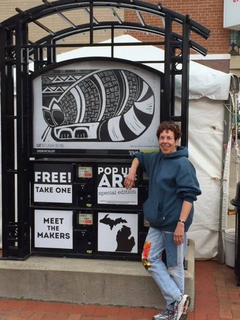 I have taught print-making classes at Michigan State University, Grove Gallery and Studios in East Lansing, the Lansing Art Gallery, and Blue Lake Fine Arts Camp as well as intensive, week-long workshops at Ghost Ranch in Abiquiu, NM. I enjoy sharing my love of relief printing with both kids and adults, always learning as much from them as they do from me. If you are interested in a linocut workshop, contact me, Laura B DeLind, via this website.